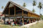 Rumah Adat Aceh berbentuk panggung. Mempunyai 3 serambi yaitu Seuramue Keu (serambi depan), Rumah Inong (serambi tengah), dan Seurarnoe Likot (serambi belakang). Selain itu ada rumah berupa lumbung padi yang dinamakan Krong Pade atau Berandang